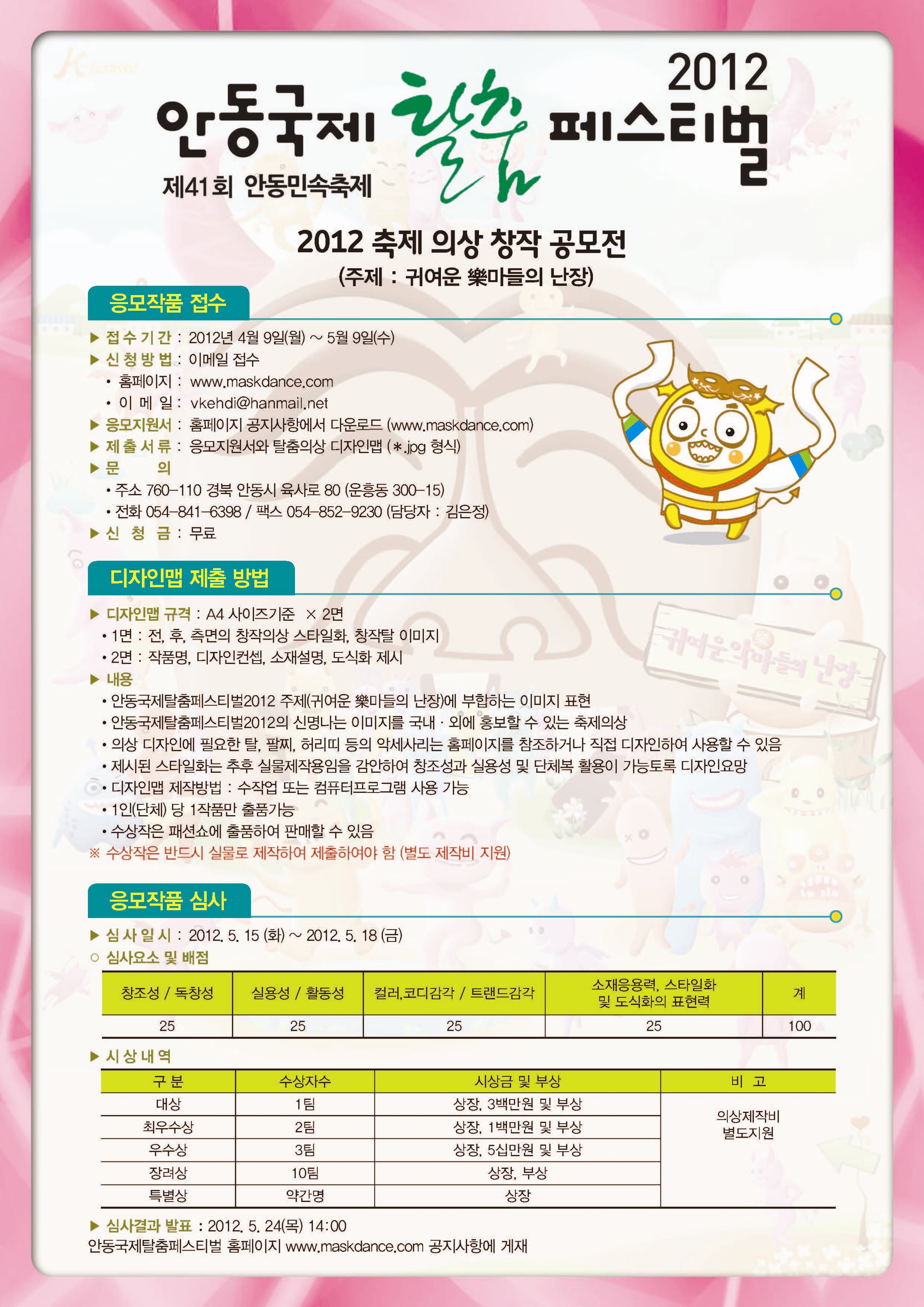 ◦ 공 모 명 : 안동국제탈춤페스티벌2012 ‛ 축제의상 창작공모전’