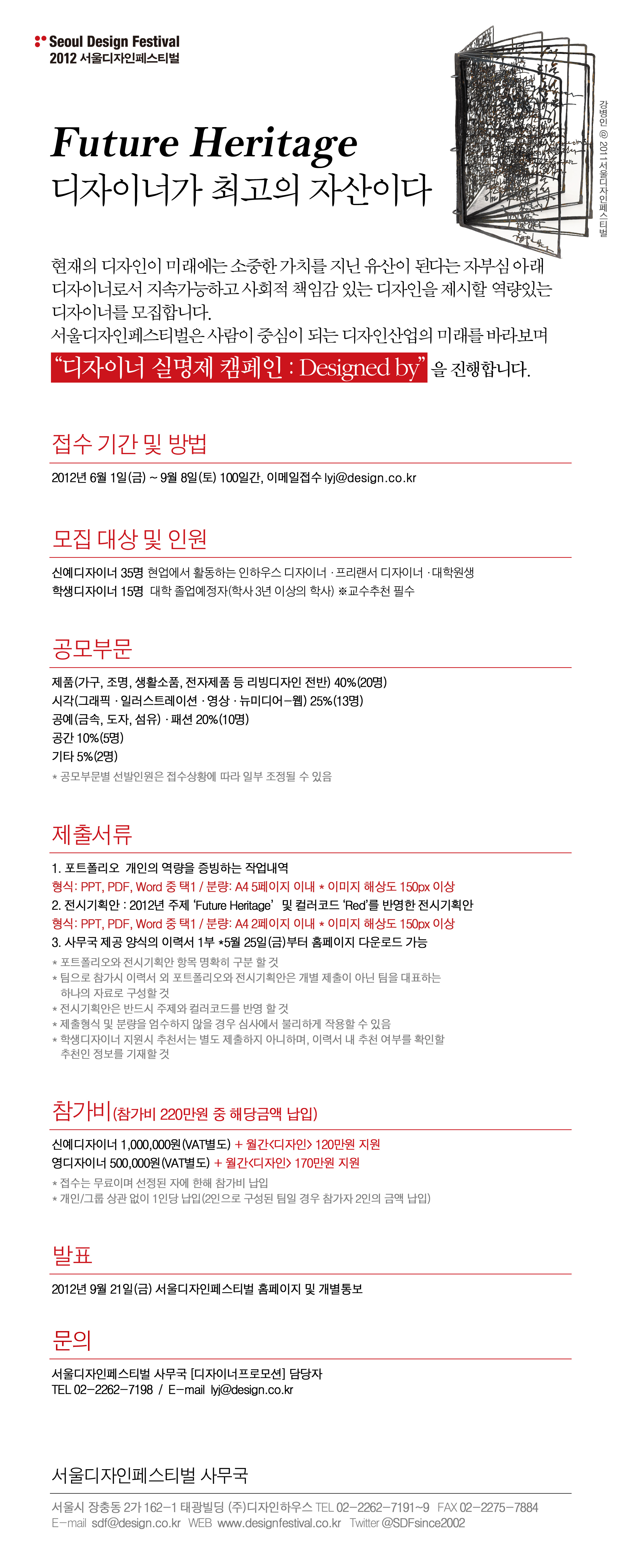 2012년 6월 1일(금) ~ 9월 8일(토) 100일간, 이메일접수 lyj@design.co.kr