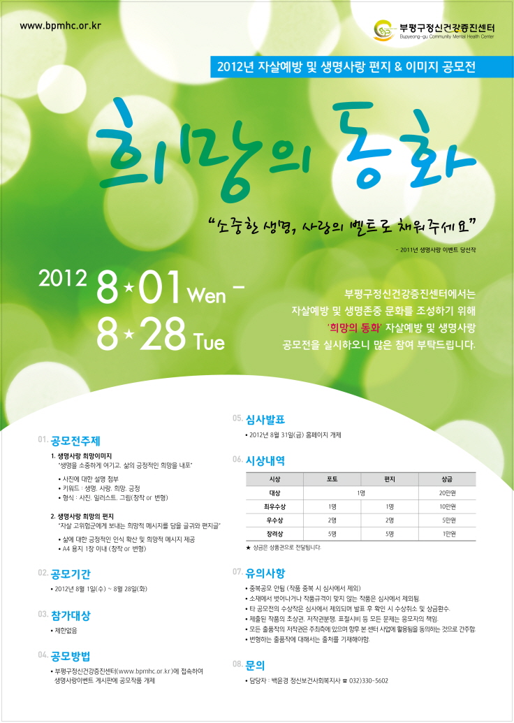 부평구정신건강증진센터, 자살예방 및 생명사랑 공모전 “희망의 동화”