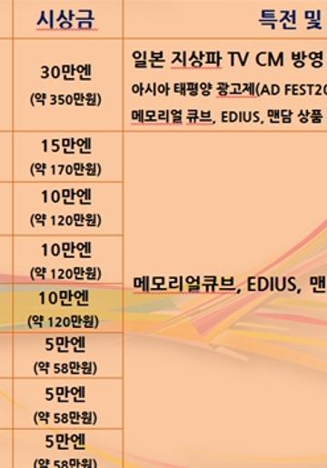 - 무편집 CM 부문 : 전편 NO CUT, 편집, 가공을 하지 않은 CM 작품 부문 / 경험이 없어도, 편집 기자재가 없어도 아이디어로 승부