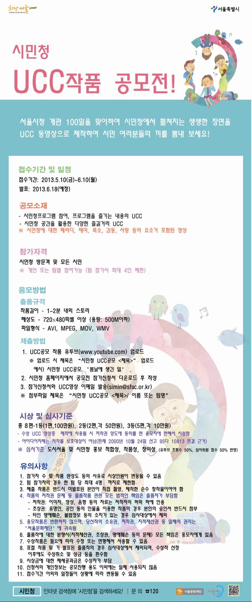 ※ 첨부파일 제목은 "시민청 UCC공모 < 제목> /이름 또는 팀명"