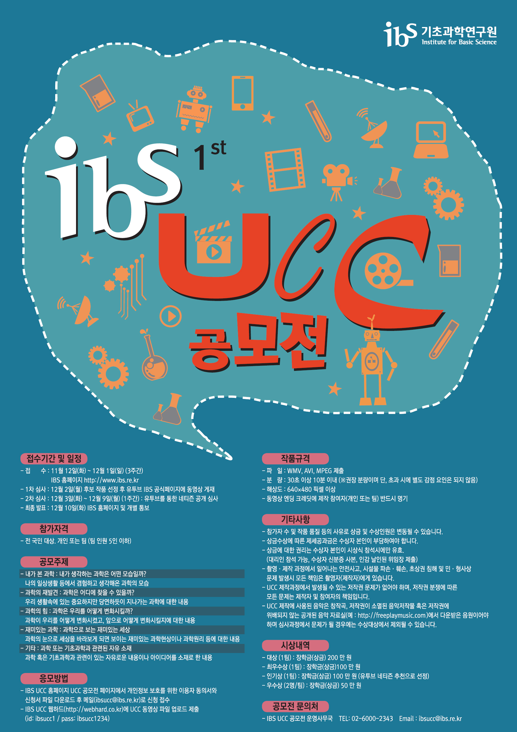 - IBS UCC 공모전 운영사무국 TEL: 02-6000-2343 Email : ibsucc@ibs.re.kr