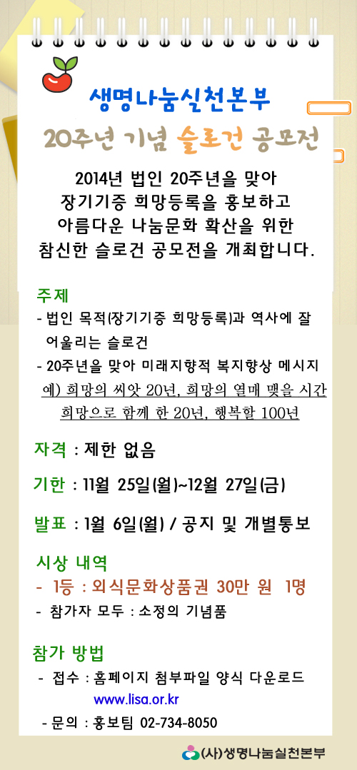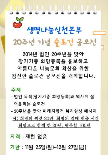 장기기증 20주년 기념 슬로건 공모전
