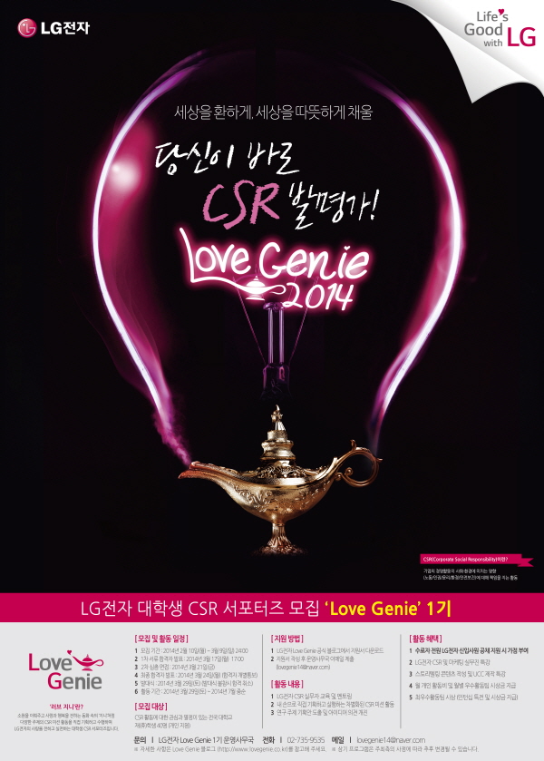 LG전자 대학생 CSR 서포터즈 Love Genie 2014 모집