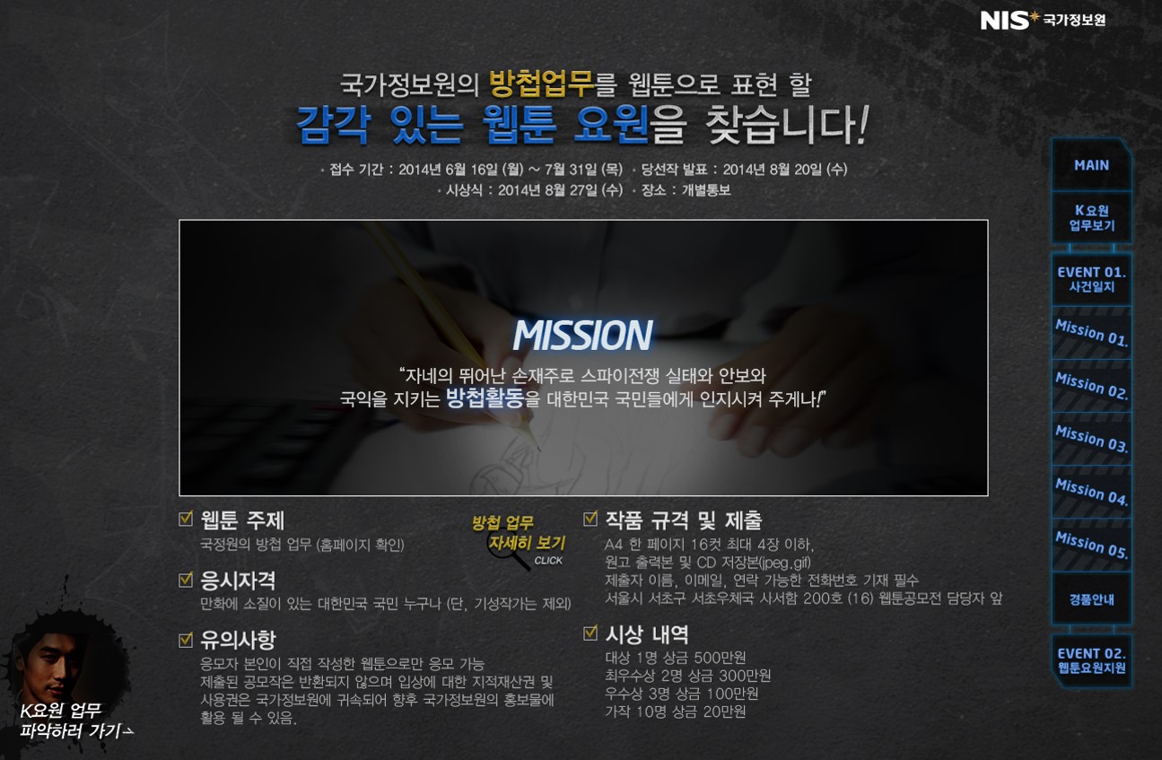 [국정원 웹툰 공모전] 감각있는 웹툰요원을 찾습니다