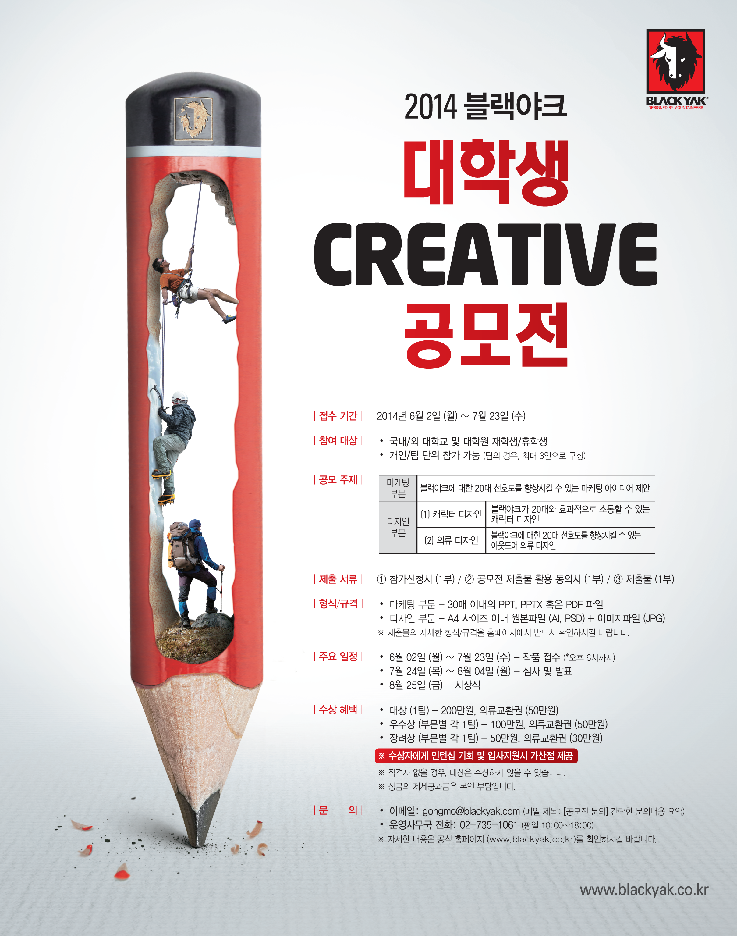 ※ 특전: 수상자에게 ㈜블랙야크 인턴십 기회 및 입사지원 시 가산점 제공