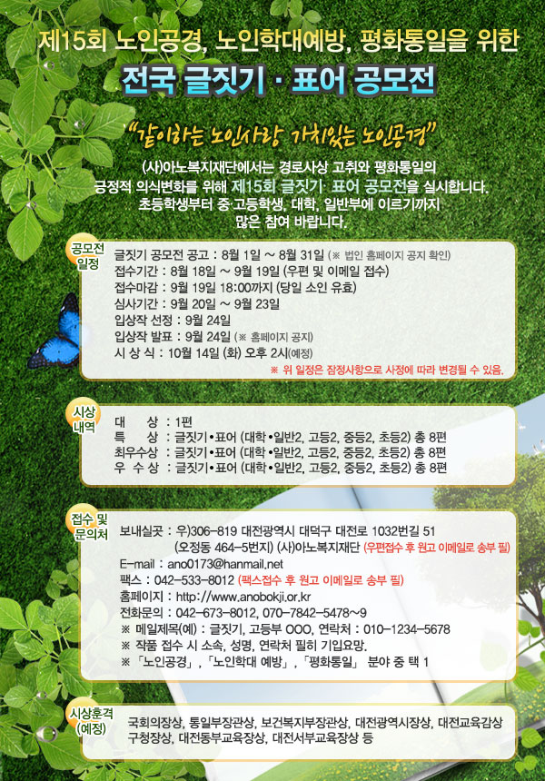 제15회 노인공경, 노인학대예방, 평화통일을 위한 전국 글짓기 표어 공모전