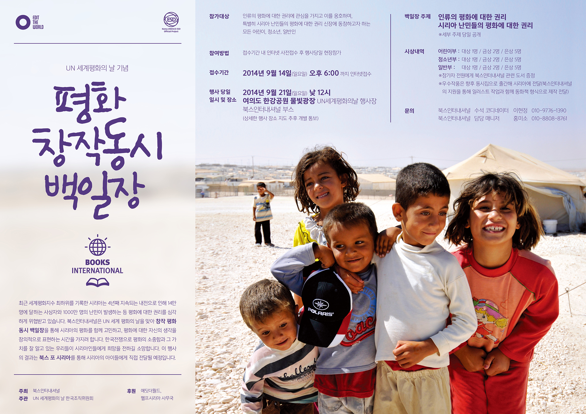 북스인터내셔널은 이번 <평화 창작동시백일장>을 통해 시리아의 평화를 함께 고민하고,