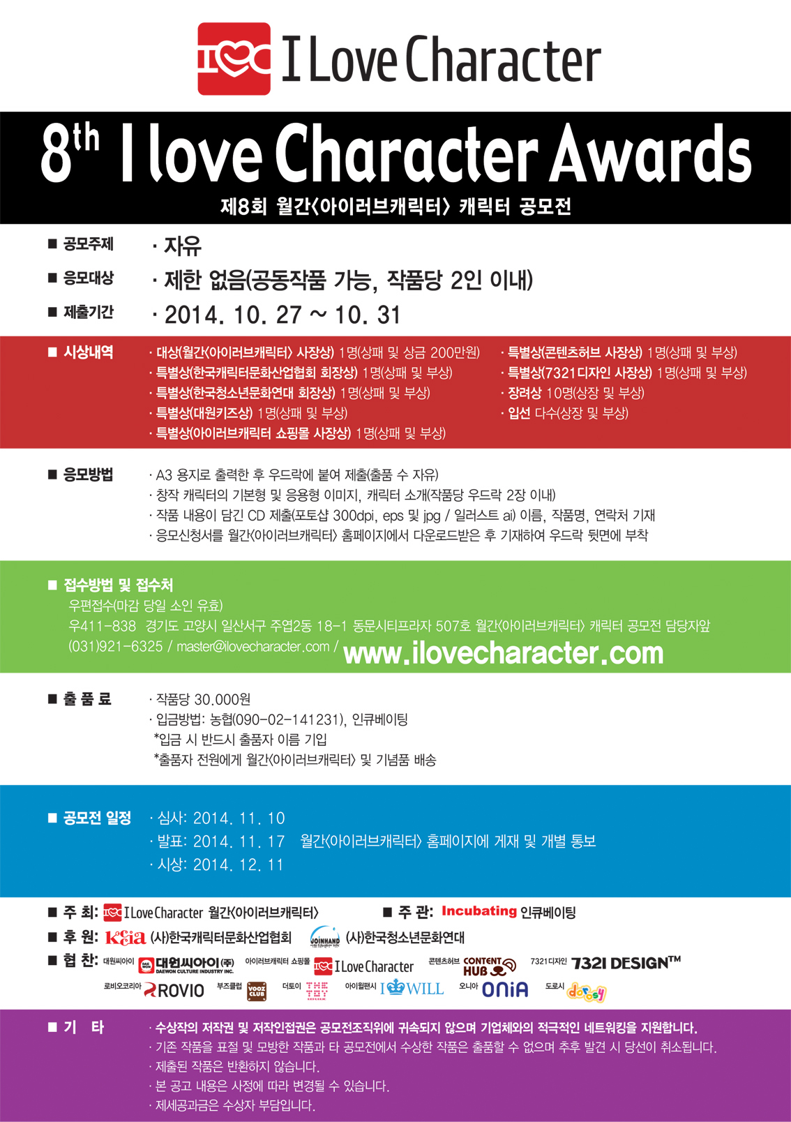 ·발표: 2014. 11. 17 월간<아이러브캐릭터> 홈페이지에 게재 및 개별 통보