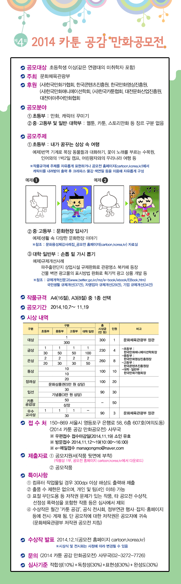 - 중·고 및 일반·대학생 : 웹툰·카툰·스토리 만화로 응모