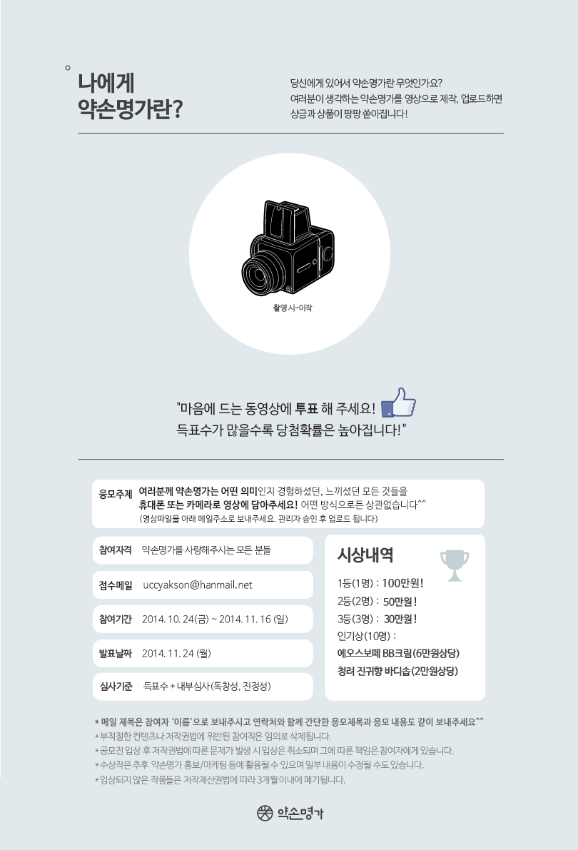 나에게 약손명가란 무엇인지, 어떤의미인지 영상으로 남겨주세요! 약손명가가 상금을 펑펑 쏩니다! 지금 바로 참여하세요!