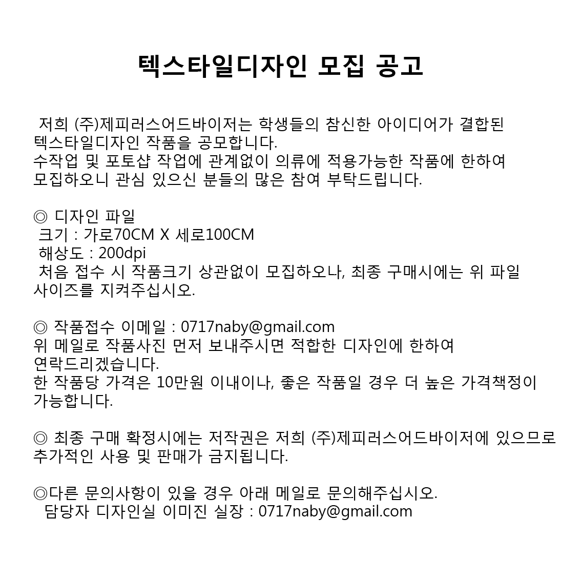 수작업 및 포토샵 작업에 관계없이 의류에 적용가능한 작품에 한하여 모집하오니