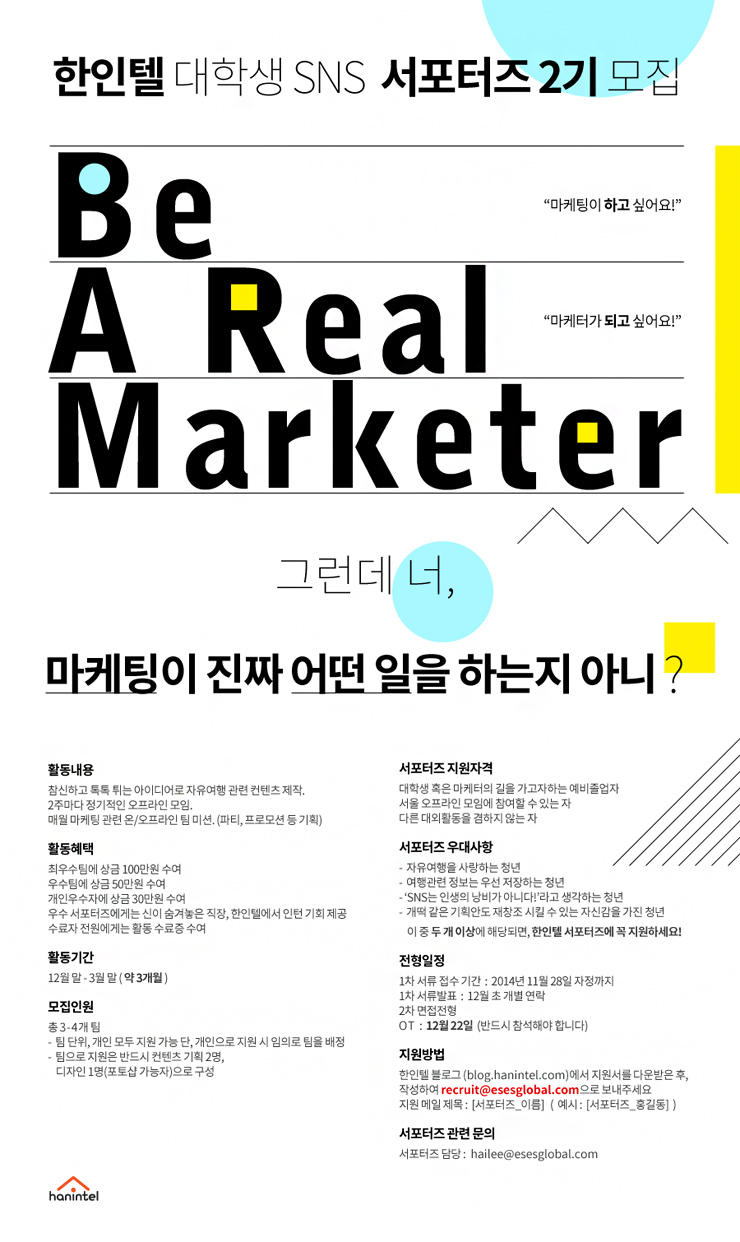 - 우수 서포터즈에게는 신이 숨겨놓은 직장, 한인텔에서 인턴 기회 제공