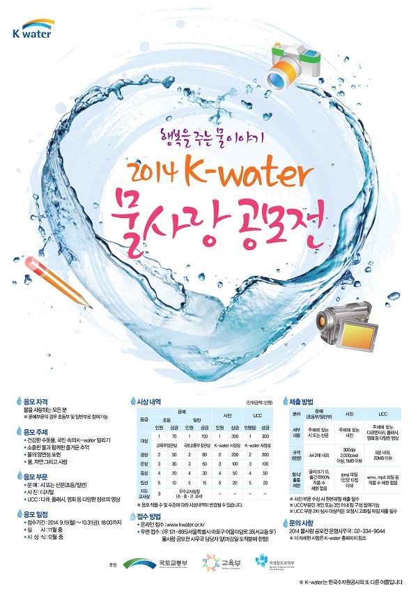 - 2014 K-water 물사랑 공모전 운영사무국 T : 02-334-9044