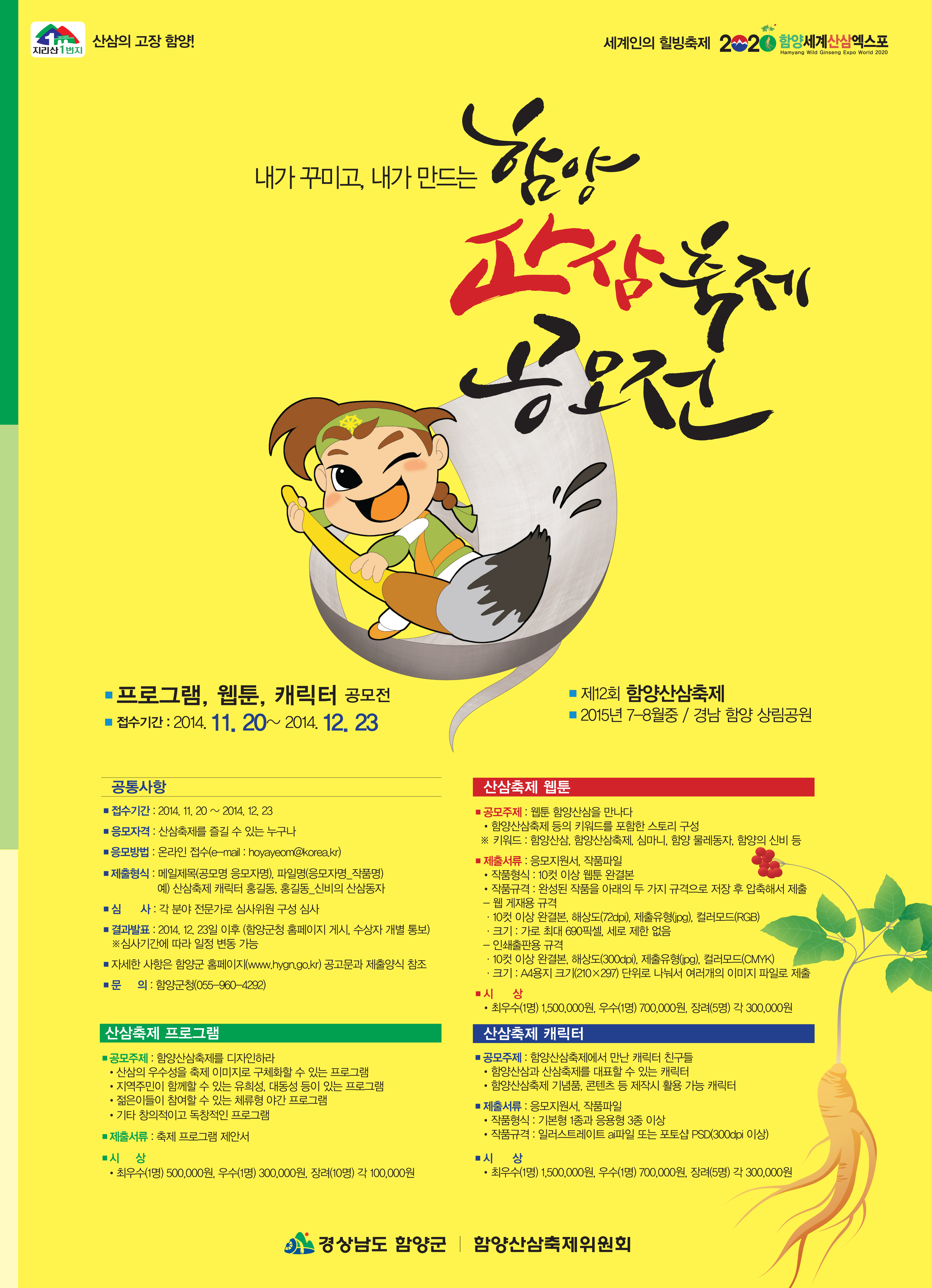 함양산삼축제 프로그램, 웹툰, 캐릭터 전국 공모전