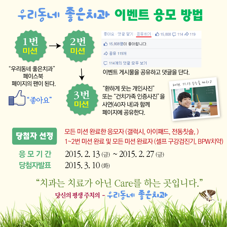미션3) "환하게 웃는 개인사진" 또는 "건치가족 인증사진"을 페이지에 공유한다.