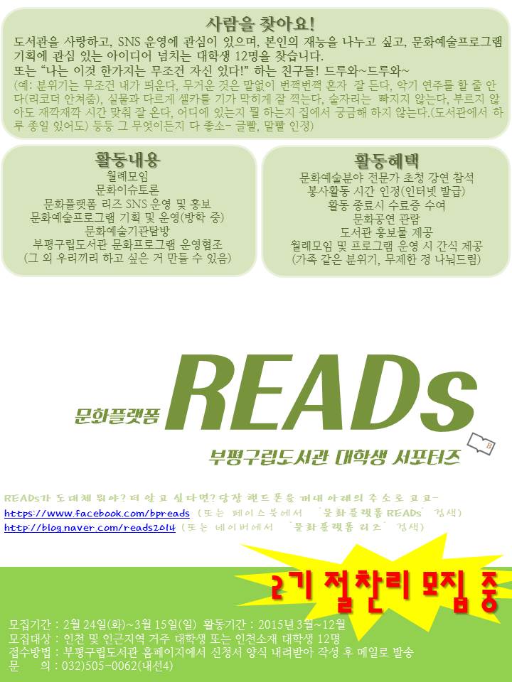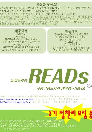부평구립도서관 대학생 서포터즈 <문화플랫폼 READs> 2기
