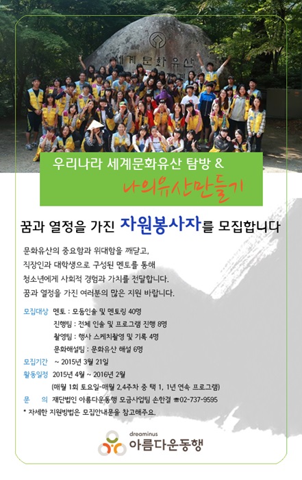 우리나라 세계문화유산탐방 & ' 나의유산만들기' 멘토 및 봉사자 모집