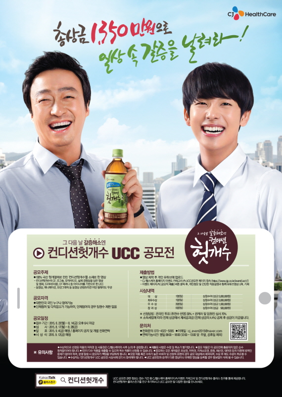 - 컨디션헛개수의 CF, 로고송, 뮤직비디오, 실제 경험담을 담은 영상 및 영화, 드라마(미생), CF패러디 등 아이디어를 기반으로 한 UCC