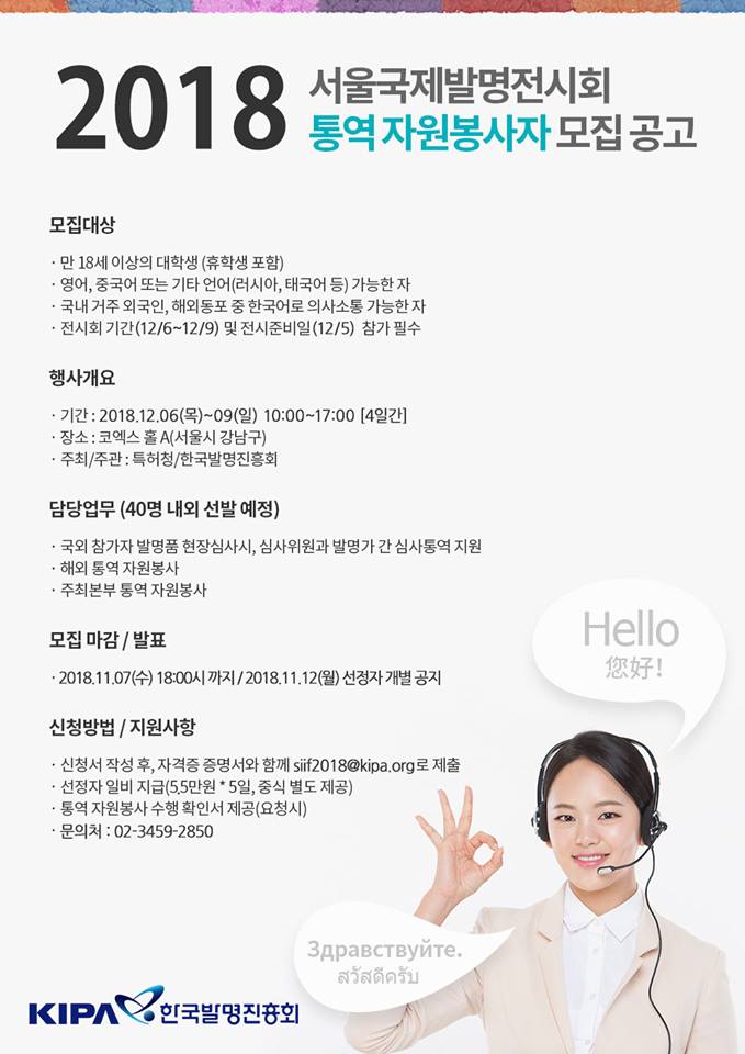 https://bit.ly/2yfXHQm 서울국제발명전 자원봉사 모집 공고 URL
