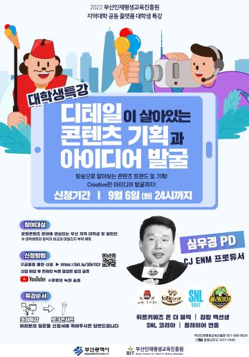 [부산인재평생교육진흥원] 2022 지역대학 대학생 역량 강화를 위한 대학생 무료 특강(~9/06 화)[디테일이 살아 있는 콘텐츠 기획과 아이디어 발굴]