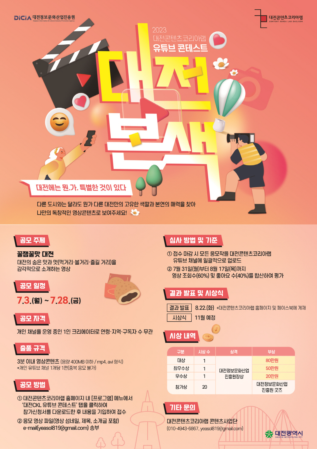 대전콘텐츠코리아랩 콘텐츠사업단(010-4943-6867, yeasol819@gmail.com)