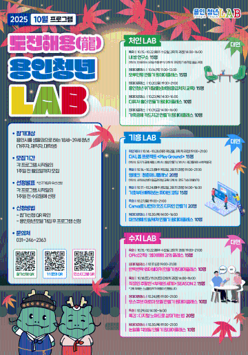 * 모집대상: 18세~39세 용인 거주/생활 청년(대학생, 재직자 등 활동청년)