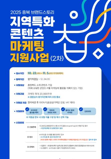 2025 충북 브랜드스토리 지역특화콘텐츠 마케팅지원사업 2차 모집 공고