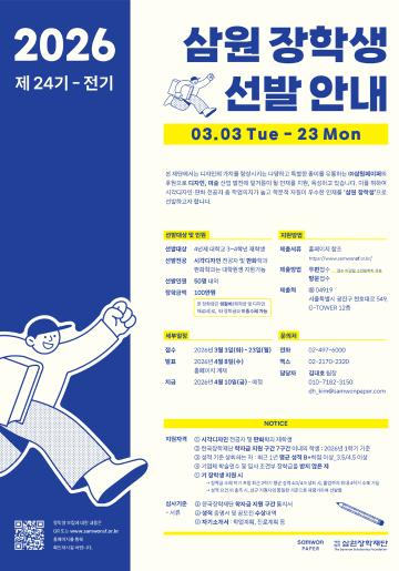 #삼원장학재단 # 삼원장학생 # 삼원페이퍼 # 시각디자인장학금 # 판화학과 # 디자인장학금 # 대학생장학금 # 대학생장학금