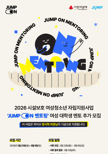 2026 시설보호 여성청소년 자립지원사업 「JUMP ON 멘토링」 여성 대학생 멘토 추가 모집 안내 (충청/전라권)