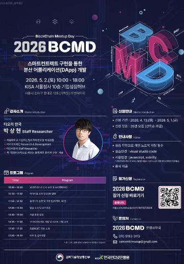블록체인 이론과 실습 교육에 관심있는 분들의 많은 참여 바랍니다.
