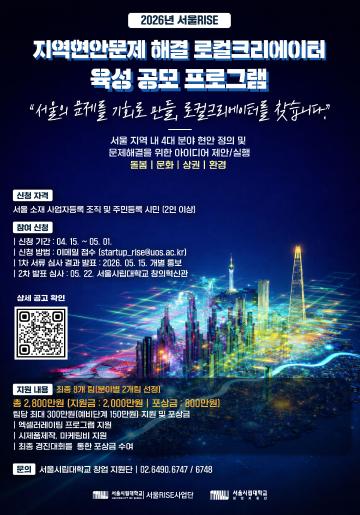 ○ 공고주제: 서울 지역 내 4대 분야(돌봄·문화·상권·환경)의 현안 정의 및 해결 아이디어 제안/실행