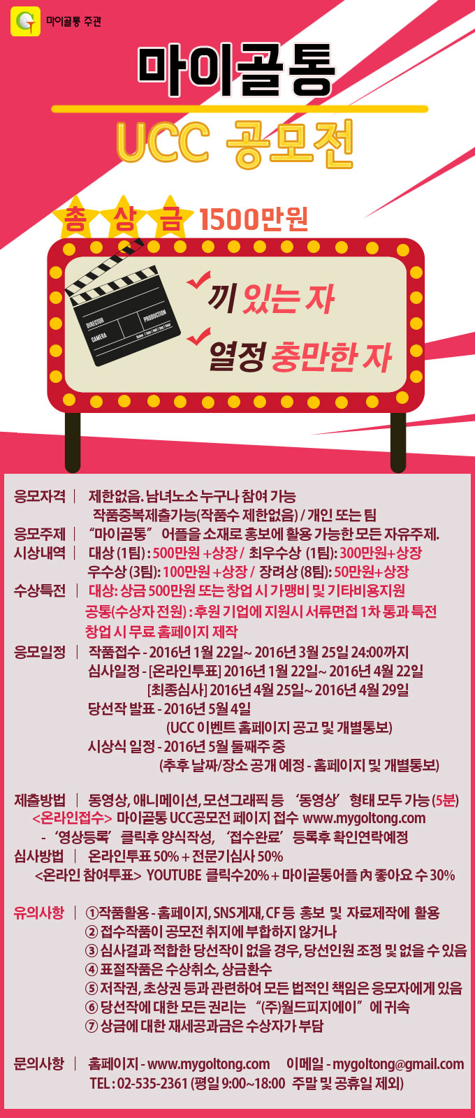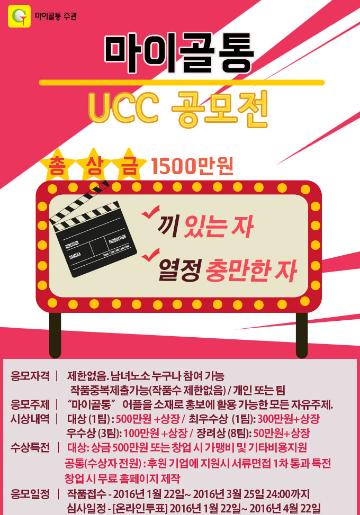 - 당선작 발표 : 2016년 5월 4일 (UCC 이벤트 홈페이지 공고 및 개별통보)