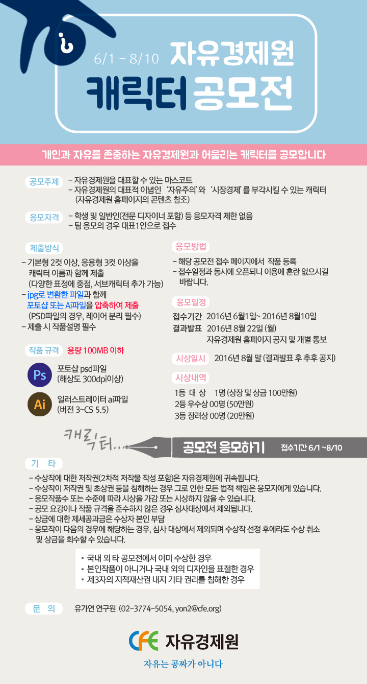 - 결과발표 : 2016년 8월 22일(월) 자유경제원 홈페이지 공지 및 개별 통보