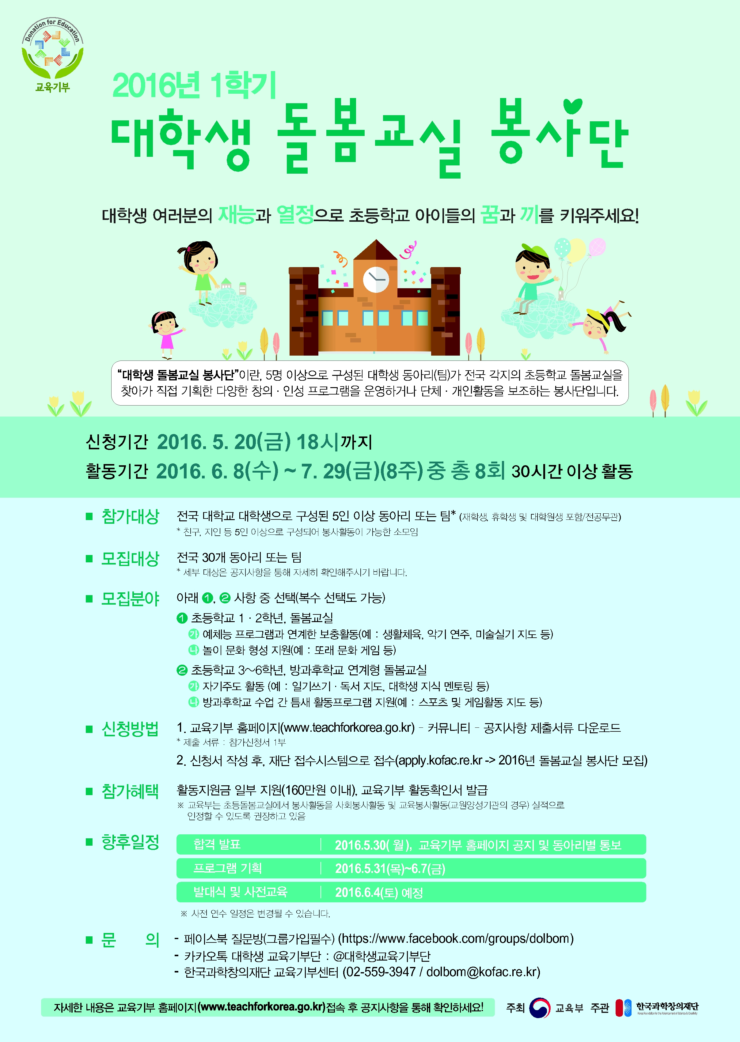 - 한국과학창의재단 교육기부센터(02-559-3947, dolbom@kofac.re.kr)