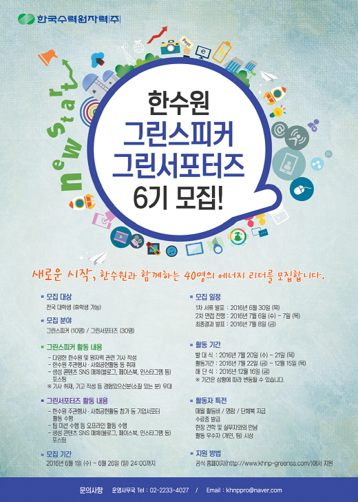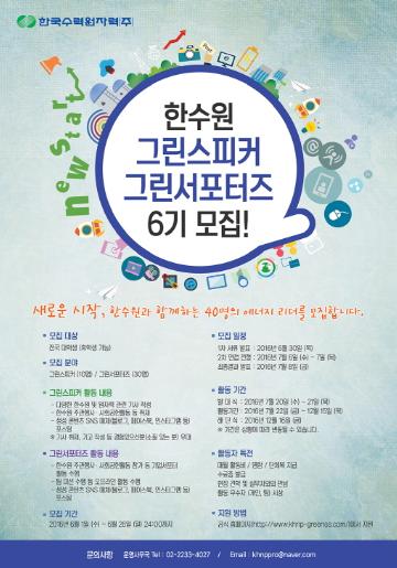 한수원 그린스피커&그린서포터즈 6기 모집 새로운 시작, 한수원과 함께하는 40명의 에너지 리더를 모집합니다.