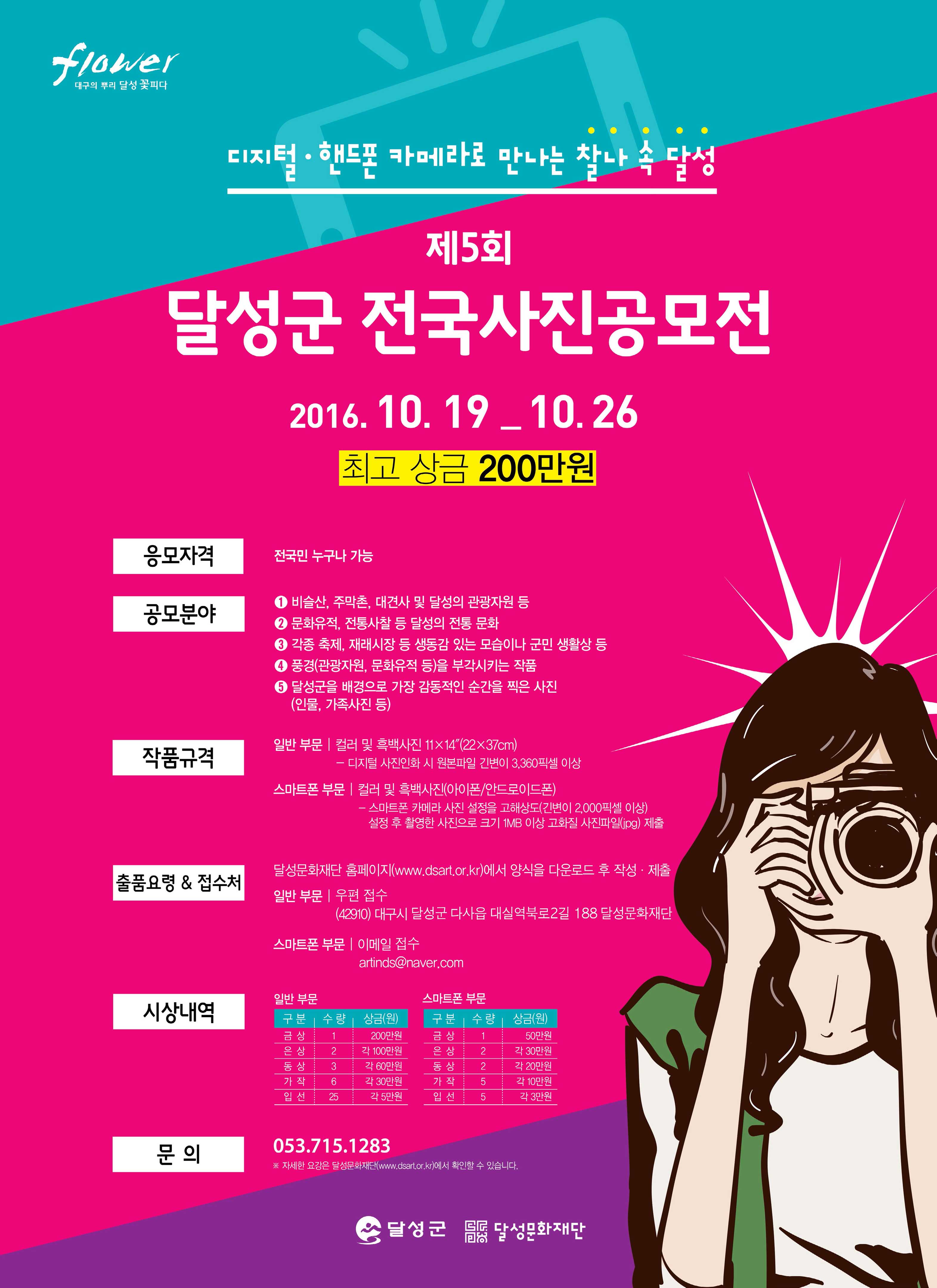 - 일반부문 : 우편접수 (42910)대구시 달성군 다사읍 대실역북로2길 188 달성문화재단
