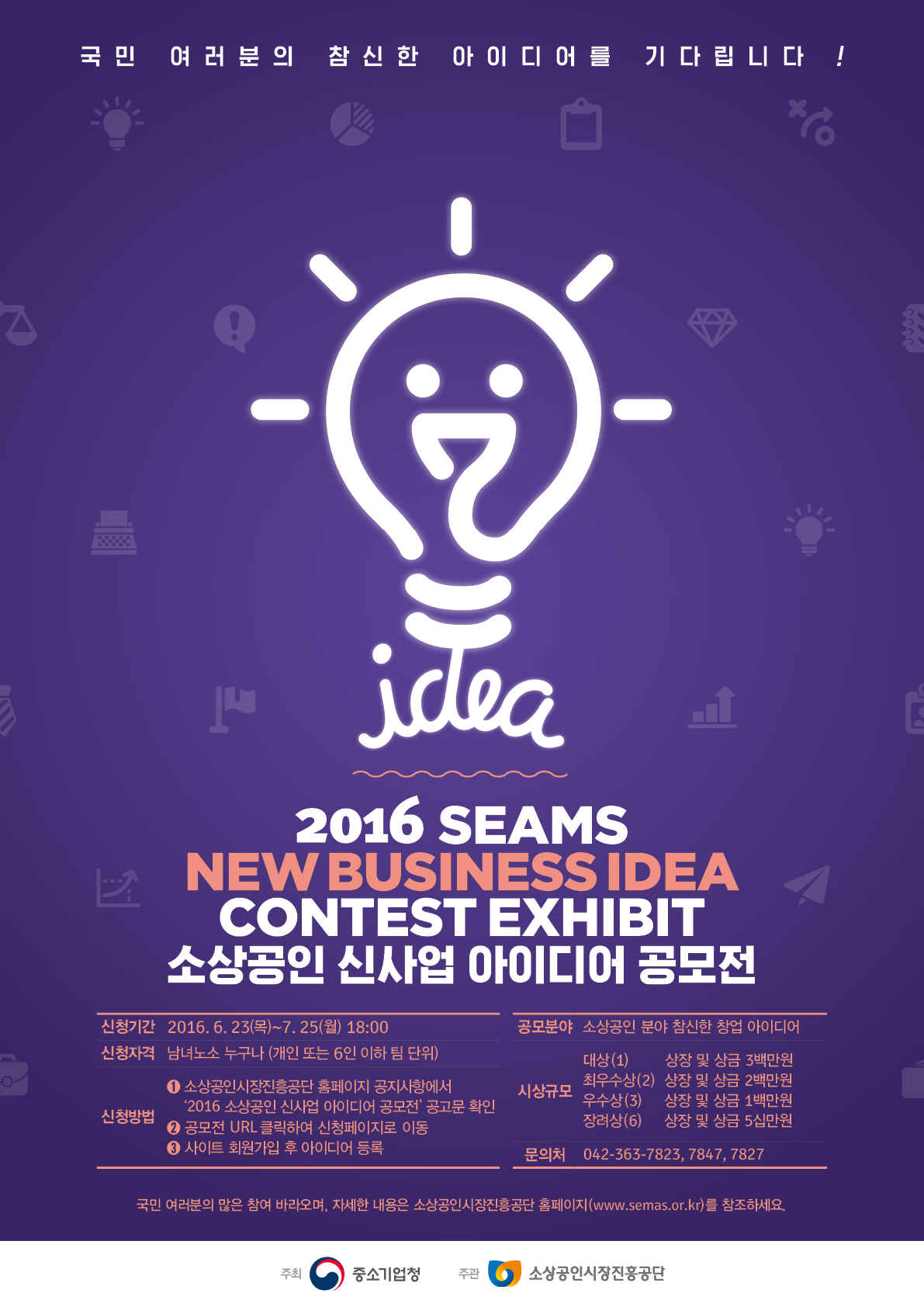① 소상공인시장진흥공단 홈페이지 공지사항에서 ' 2016 소상공인 신사업 아이디어 공모전' 공고문 확인