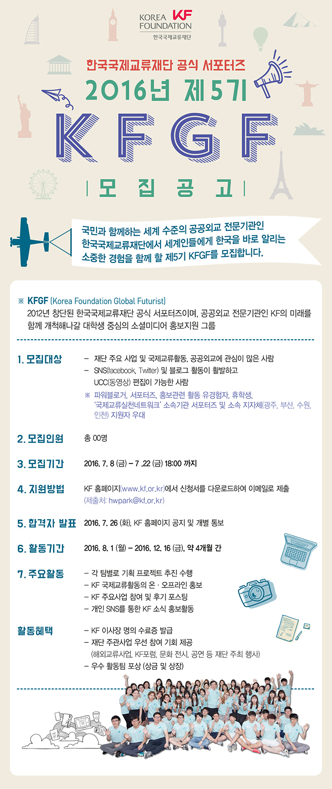 * 합격자 발표: 2016/7/26 (화) KF 홈페이지 및 개별 통보