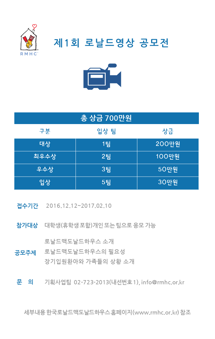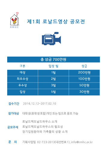 - 로날드맥도날드하우스를 알릴 수 있는 영상 제작 공모