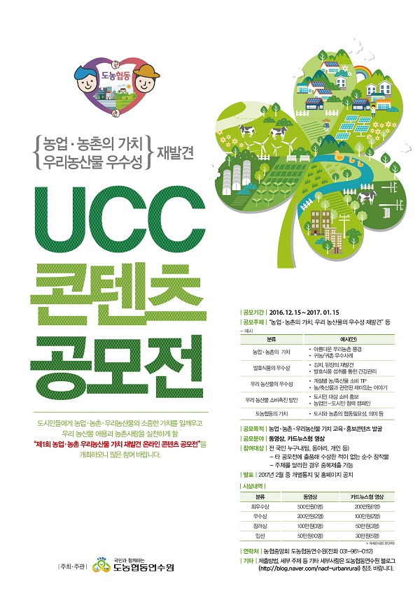 - 도농협동연수원 온라인콘텐츠 경진대회 담당 031-961-0112 (평일 09:00 ~ 18:00)