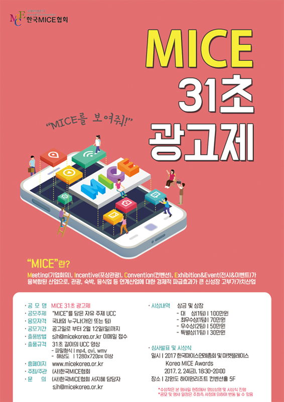 ※ 이메일 제목 : MICE 31초 광고제 접수 2017-월월-일일(참가자성명)