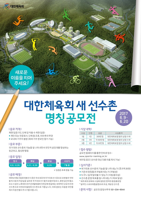 - 네이밍 응모 (선수촌 대신 다른 이름 제시 가능)