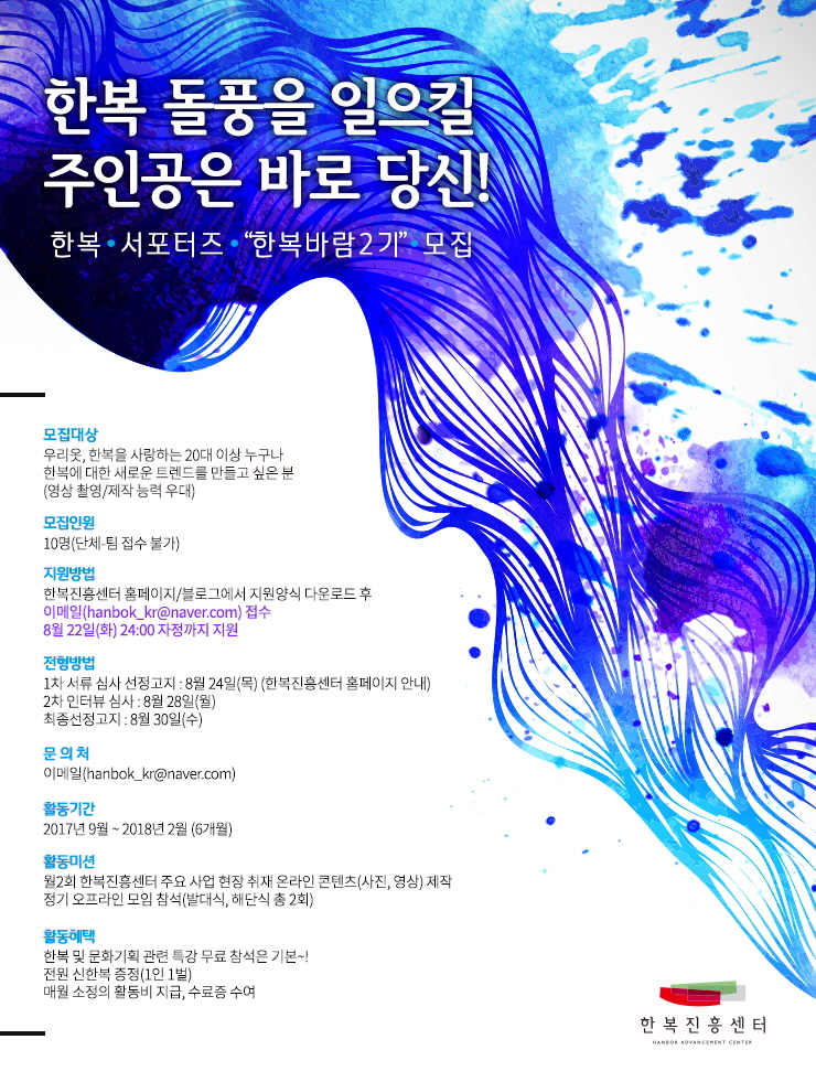 한복 돌풍을 일으킬 주인공! "한복바람2기" 서포터즈 모집