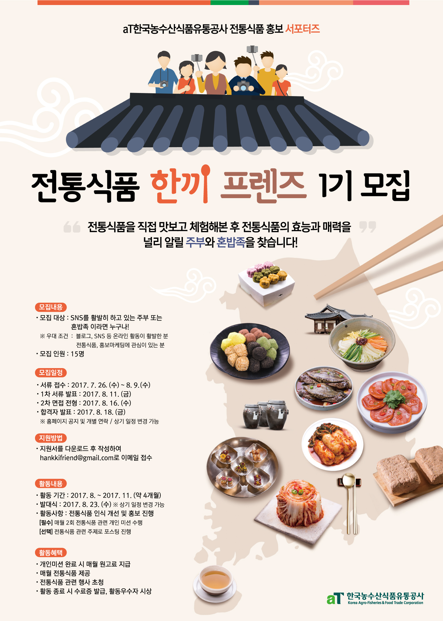 ※ 우대 조건 : 블로그, SNS 등 온라인 활동이 활발한 분 / 전통식품, 홍보마케팅에 관심이 있는 분