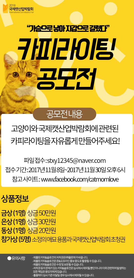 - 참가상(5명) : 소정의 애묘 용품과 국제캣산업박람회 초청권