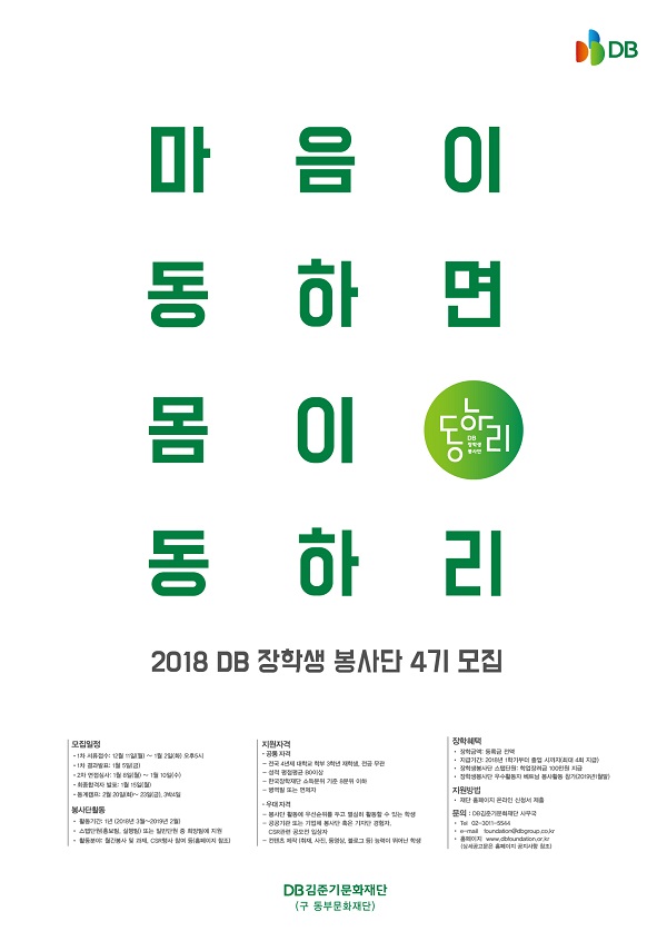 - DB김준기문화재단 사무국 (Tel.02-3011-5544 / E-mail. foundation@dbgroup.co.kr )