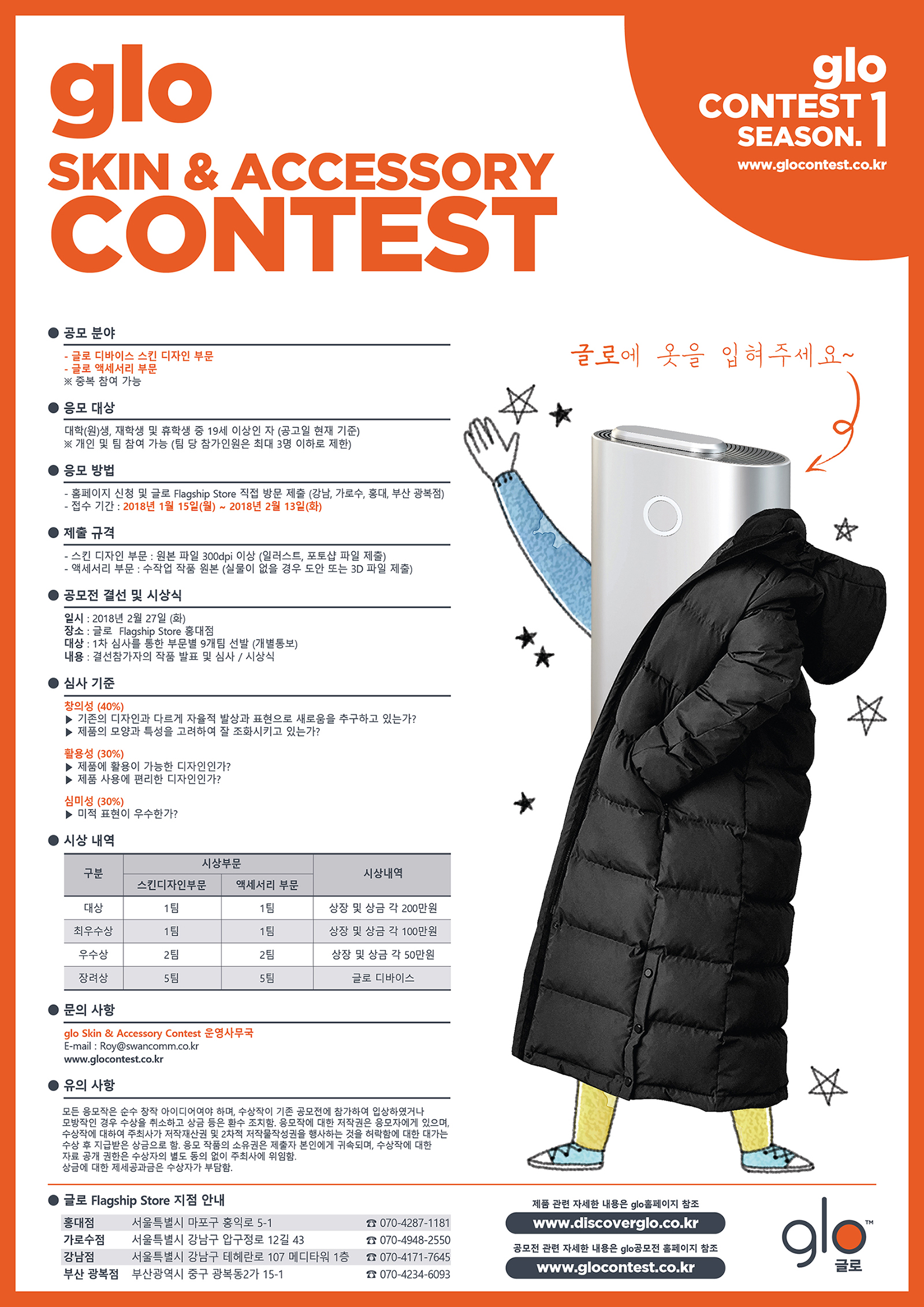 - 홈페이지 신청 및 글로 Flagship Store 직접 방문 제출 (강남, 가로수, 홍대, 부산 광복점)