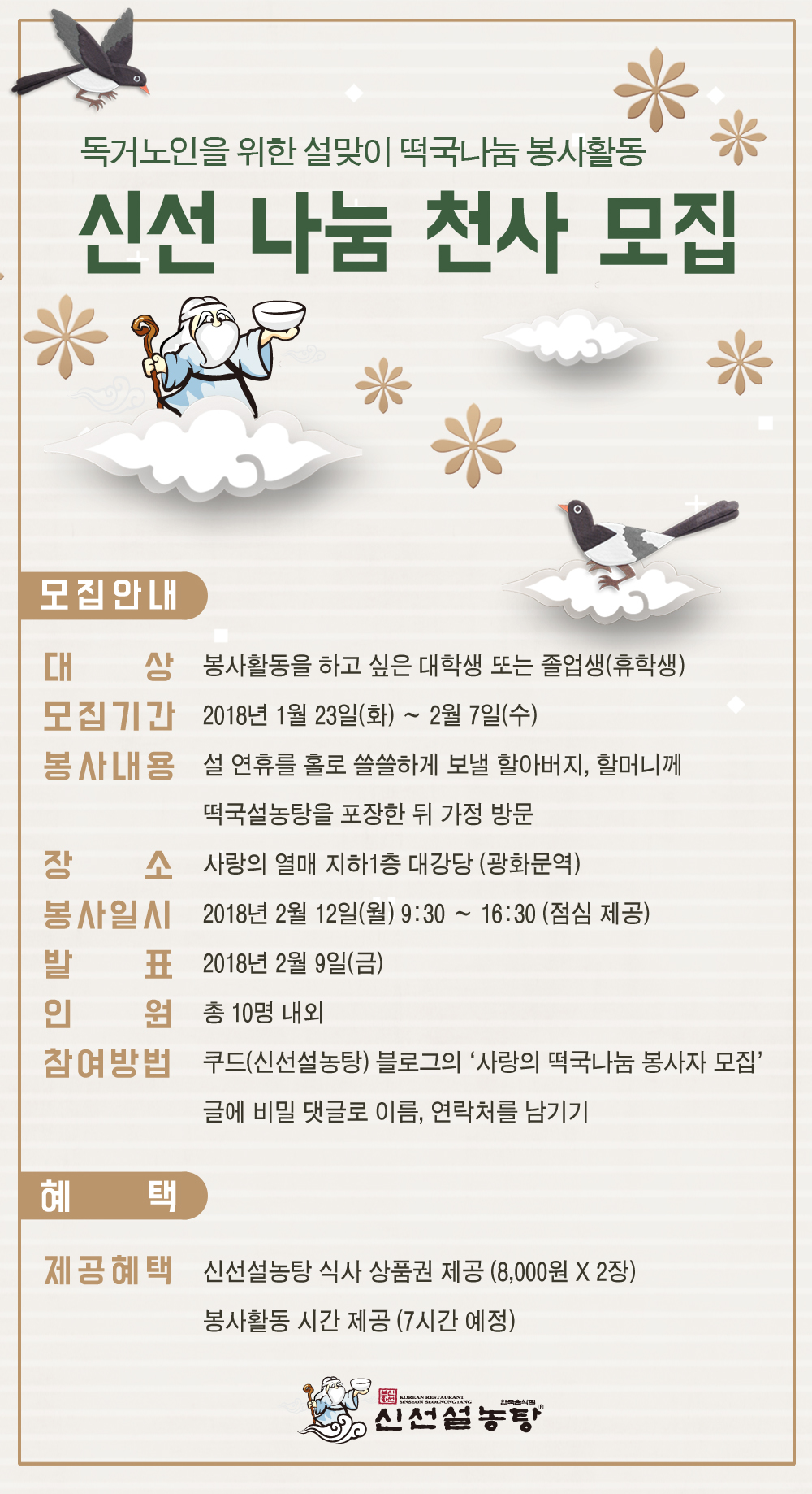 - 신선설농탕 식사 상품권 제공 (8000원 X 2장)