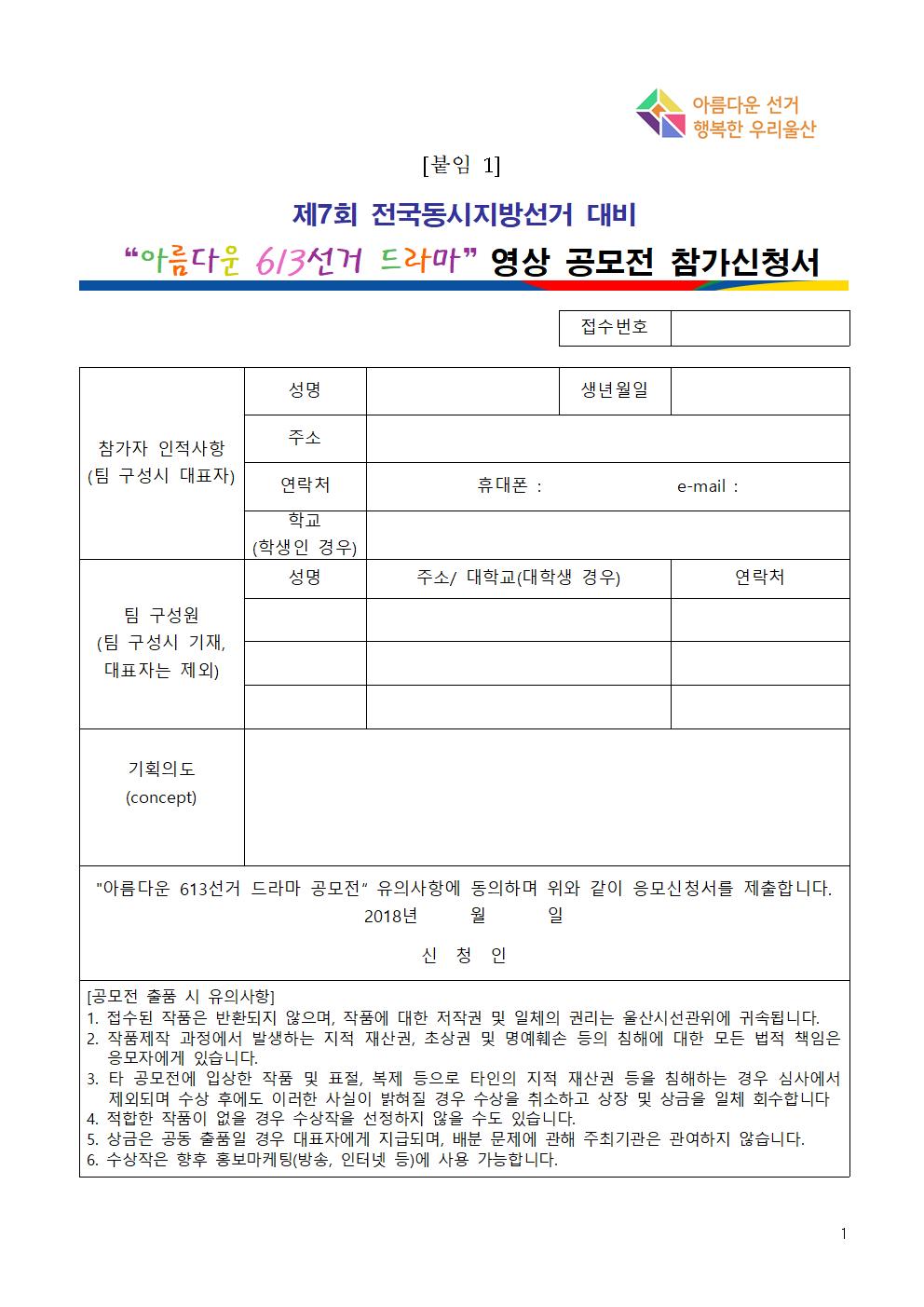 ▶ 응모방법 : 신청서 및 출품영상물 메일 제출(nix0314@hanmail.net)